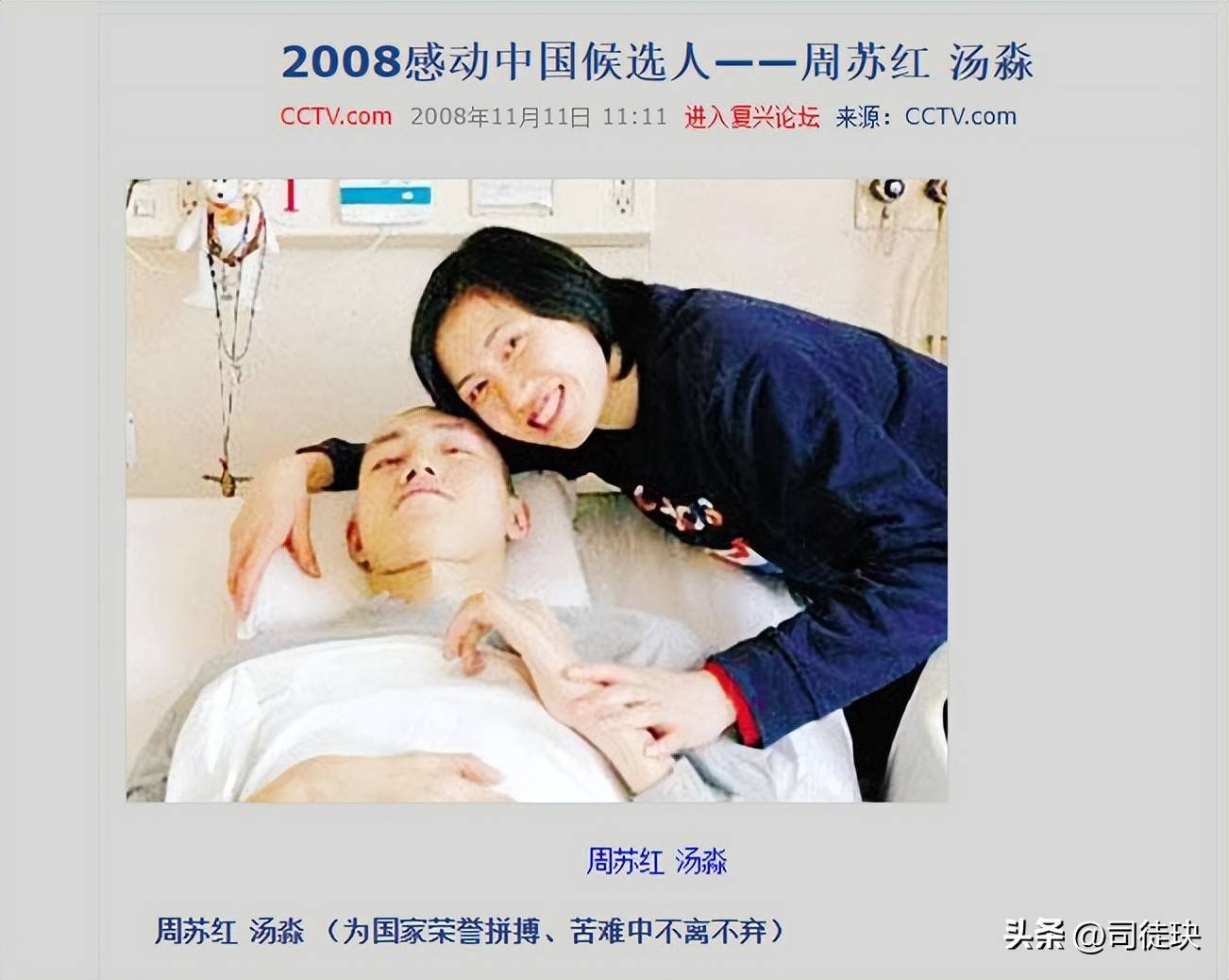 2007年6月13日,汤淼在俄罗斯的交流赛磨练中失慎撞到墙壁,导致颈椎闹翻性骨折,最终瘫痪在床。这一音尘如好天轰隆般打击了周苏红,她立即请假赶到汤淼身边,长久跟随着他渡过粗重的疗养时间。汤淼也在太太的复古下努力坚抓着我方的梦念念,然而,跟着时间的荏苒,他的病情并未获得清楚的好转。