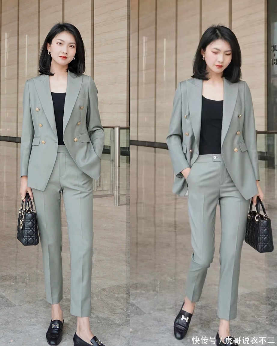 皇冠app盘口因为西服和裤子每每用的是吞并种色彩,是以不错选一些马虎的神色,更利于女性独霸。比如上图这身灰色的西服套装,称身的剪辑加上低调的神色,不错打造出比拟疯狂干练的一面,融合上玄色挎包与同色系皮鞋,则将严肃干练的职阵势貌松开展现。