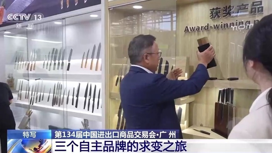 皇冠信用盘平台和江门摩托车相同,广东阳江刀具亦然地区上风产业,2022年,阳江的五金刀剪出口量约占天下的85%。对不少刀具企业而言乐鱼体育,在广交会争得一隅之地,联系到来岁全年的外贸订单。在本届广交会上,这家阳江的刀具企业专诚把他们入选广交会金奖的刀具居品摆放在显眼的位置。