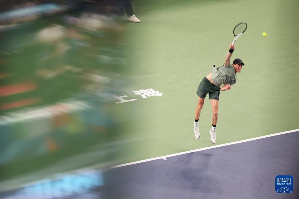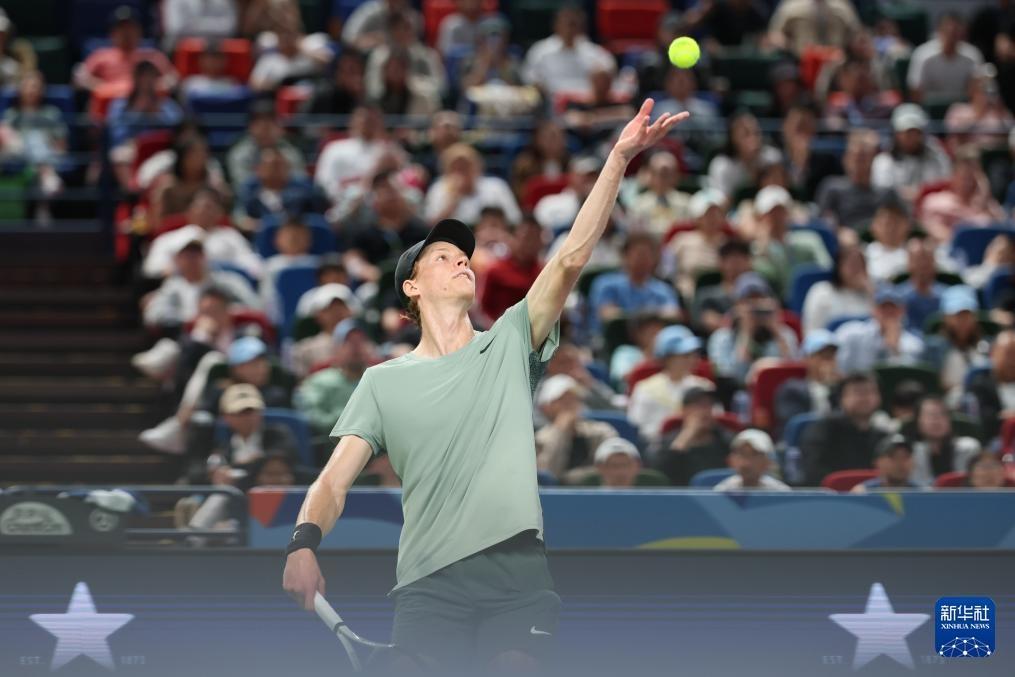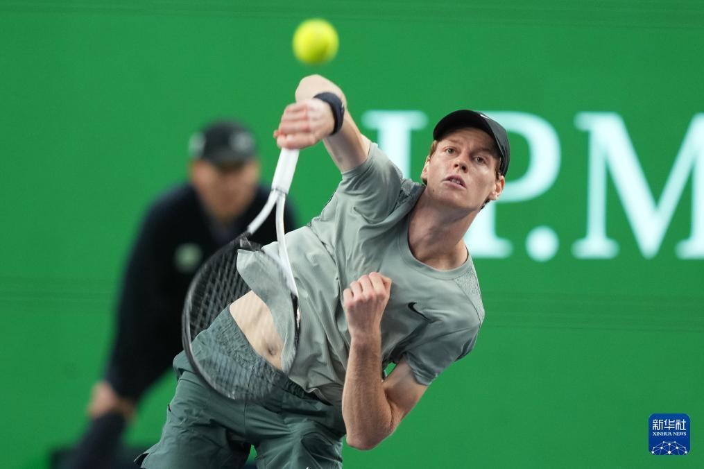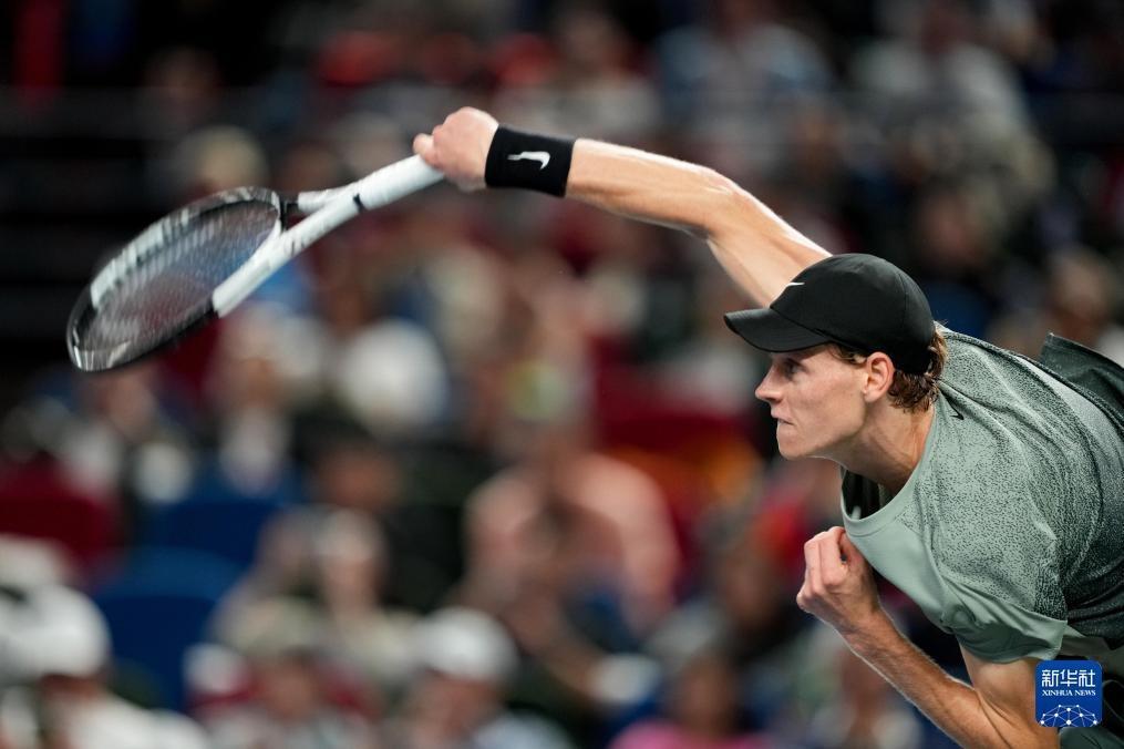 10月13日,辛纳在比赛中发球。