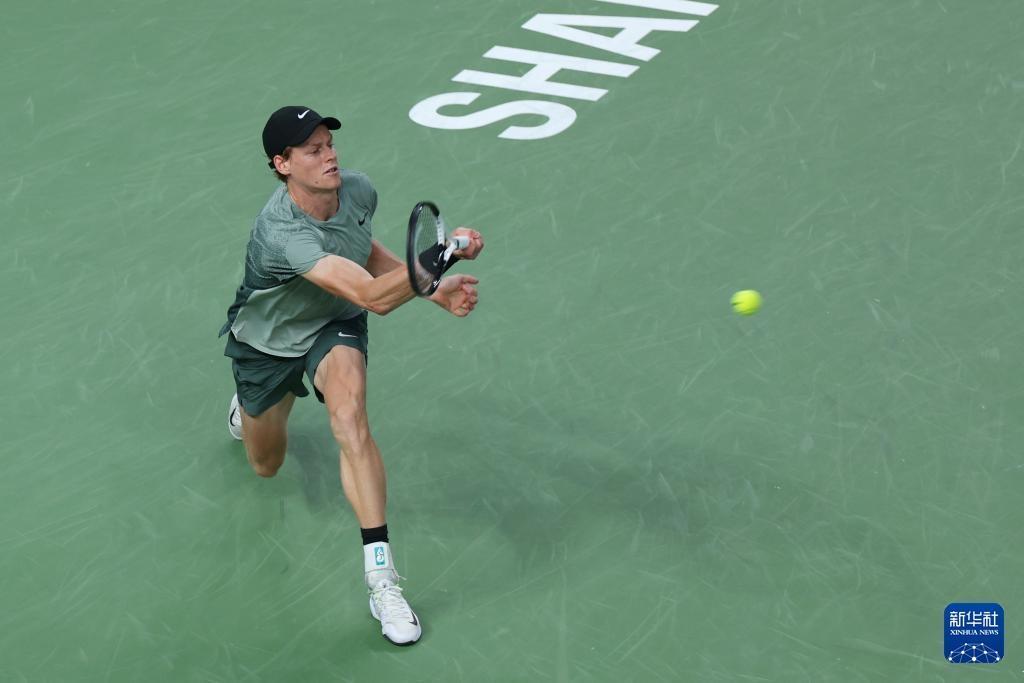 10月13日,辛纳在比赛中回球。