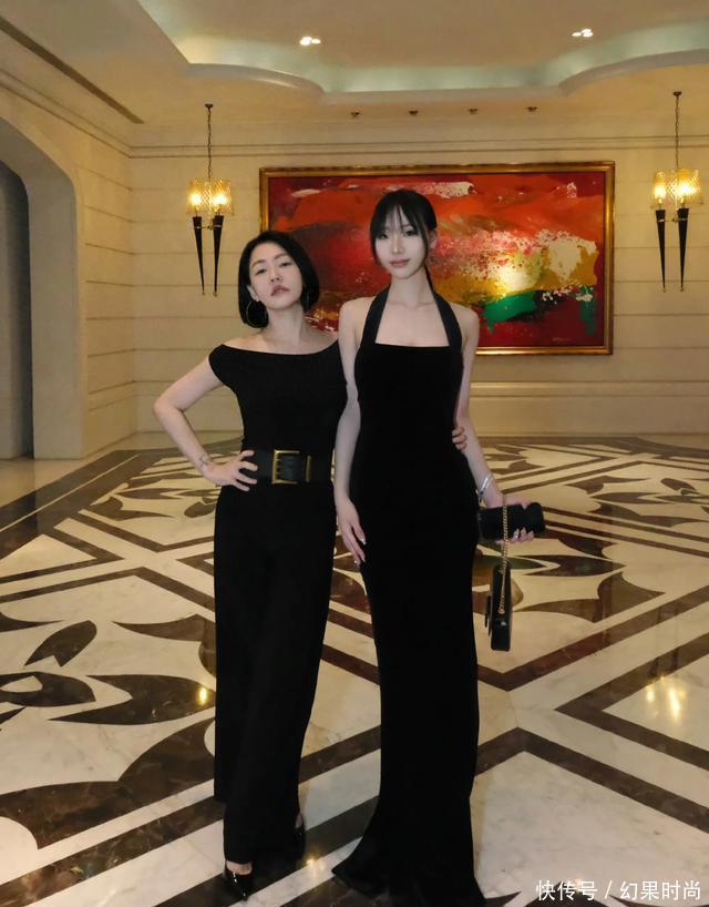 小S孤单斜肩黑裙,留着标记性的短发,摆着海外巨星般的Pose,颜料很拽很酷。如故46岁的她身段和脸都珍重的可以,很漂亮。 不外18岁的Elly更胜一筹,她相通穿了一件玄色挂脖长投降,裸露一字肩,性感又有型。这件投降很修身,很熏陶身段,Elly穿上之后,衬得她个子高挑,身段比例好,玲珑有致,很腾贵自矜,自带一股名媛气质。